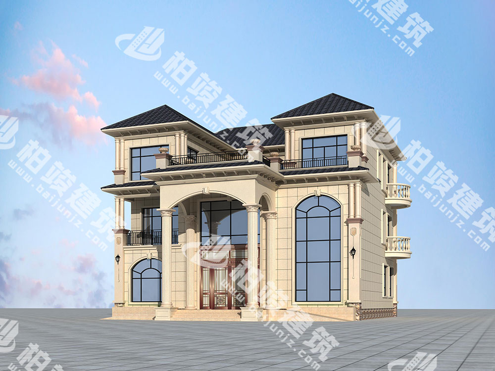 歐式構件:經(jīng)典羅馬柱、歐式雕花、花盆、花瓶型護欄、簡約窗套相搭配,營造典雅歐風