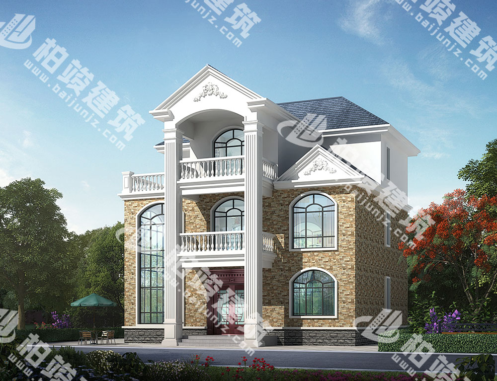 外墻裝飾:檐線、花瓶型護(hù)欄、歐式立柱帶來利落線條感,雕花裝飾尖頂注入英式華麗
