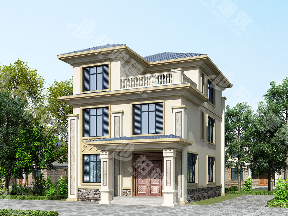 外墻涂裝:米黃色真石漆全墻涂裝,點(diǎn)綴灰棕色系文化石,營造溫馨親和的住宅氛圍