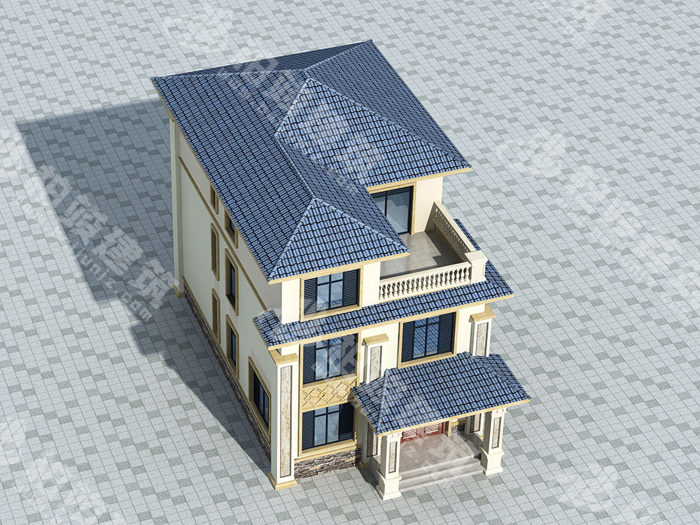 屋頂造型:灰藍(lán)色釉面瓷瓦裝飾坡形屋頂,光澤熠熠,清新時尚